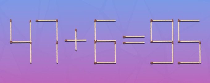 Abbiamo creato un’immagine in cui i fiammiferi sono disposti in modo da ottenere l’uglianza 47+6=95. Ovviamente c’è qcosa di sbagliato, perché la risposta dovrebbe essere 53.