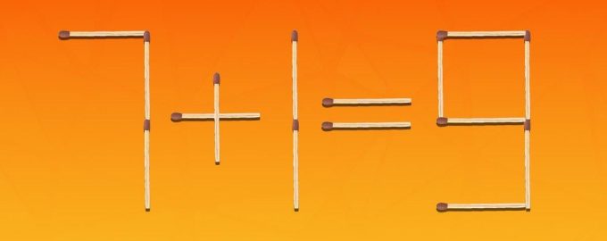 Qui sotto vedrete un’immagine in cui l’uglianza 7+1=9 è disposta con i fiammiferi. Ovviamente non è matematicamente corretto e bisogna correggerlo spostando solo due fiammiferi su 15.