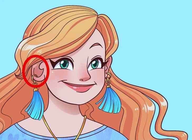 L’orecchio della ragazza è mostrato al contrario / Lato positivo
