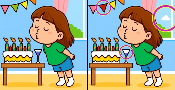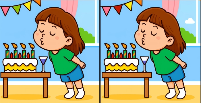 Allora, siete pronti per la prossima sfida? Osservate attentamente le due immagini della ragazza che spegne le candeline sulla torta. A prima vista possono sembrare ugi, ma ci sono 3 piccole differenze. Pensate di riuscire a trovarle tutte in 31 secondi? Provate e mettete alla prova la vostra acutezza visiva!