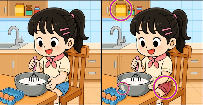 Allora, siete pronti per la prossima sfida? Osservate attentamente due immagini di una ragazza che impasta una torta. A prima vista possono sembrare identiche, ma ci sono 3 piccole differenze. Pensate di riuscire a trovarle tutte in 51 secondi? Provate e mettete alla prova la vostra acutezza visiva!