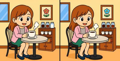 Siete pronti per il prossimo compito? Osservate attentamente due immagini di una ragazza che beve un caffè. A prima vista possono sembrare identiche, ma ci sono 3 piccole differenze. Pensate di riuscire a trovarle tutte in 19 secondi? Provate e mettete alla prova la vostra acutezza visiva!