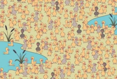 Risolvi un divertente rompicapo: tra le anatre grigie e gialle devi trovare una gallina, che è riuscita a nascondersi molto bene alla tvista.